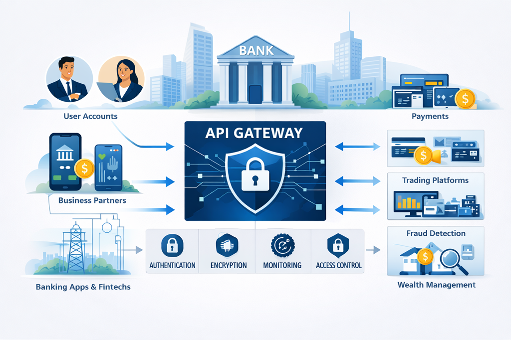 An API Gateway serves as the cornerstone of digital transformation in financial services by providing a centralized entry point for secure data exchange and service orchestration. It enforces consistent authentication, authorization, rate limiting, traffic routing, and threat protection across customer-facing and internal APIs. This enables institutions to safely expose financial data and services—whether to mobile apps, advisor portals, trading platforms, compliance tools, payment processors, fintech partners, or third-party marketplaces—while maintaining complete control and visibility over data flows. By decoupling front-end digital experiences from legacy core systems, the Gateway accelerates the deployment of new financial products such as instant payments, robo-advice, embedded insurance, real-time credit decisioning, ESG scoring engines, and hyper-personalized investment recommendations.