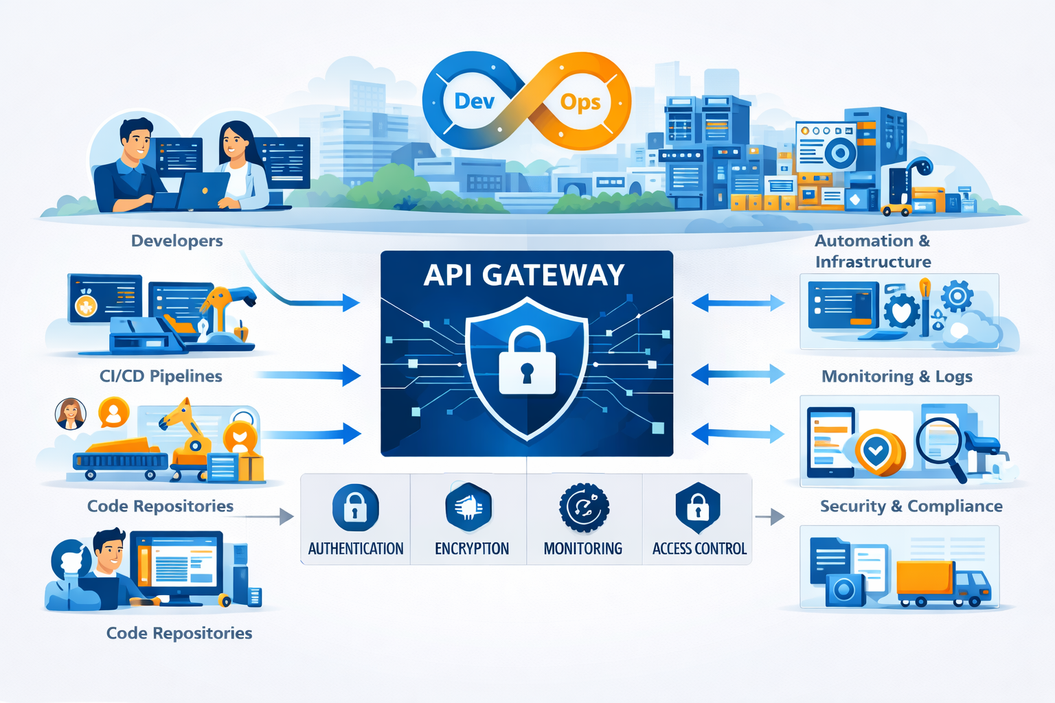 An API Gateway provides this foundational control layer by acting as the central point of entry for all API-based communication within and beyond the enterprise. It delivers consistent authentication, authorization, rate limiting, routing, and deep observability across microservices and distributed applications. The Gateway enables DevOps teams to decouple application development from infrastructure concerns—ensuring APIs remain secure, resilient, and discoverable regardless of underlying architecture. This abstraction accelerates deployments, simplifies API versioning and lifecycle management, and reduces the operational burden associated with managing service-to-service communication, especially in containerized or serverless environments.